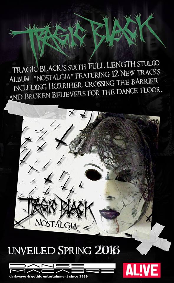 „Coming soon from the darkest corridors of mind, to the foggiest dance floors on Earth, our New Album „NOSTALGIA“ on Danse Macabre Records. This is all new, state-of-the-art old school music, executed in total decadence, returning to our roots.. „the kind of music we would of made at our beginning, if we knew then what we know now“ kind of album. We are excited for you to hear. For now unveil the cover of Nostalgia, stay tuned for pre-sale & ordering info, release date and more details. A new era of Tragic Black has began! Thanks for yer support!“