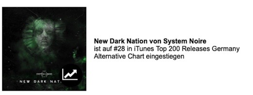 System Noire haben gerade ihre neue EP New Dark Nation veröffentlicht und landen direkt in den Itunes Alternative Download Charts in Deutschland auf Platz #28. Herzlichen Glückwunsch, Björn!