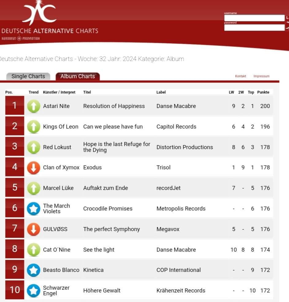 Das phänomenale neue Album der USA Darkwaver aus Miami hat es geschafft und die Spitze der Deutschen Alternative Charts erklommen. „Resolution of Happiness“ schafft den Spagat zwischen Eingängigkeit und Innovation. So liften Mychael und seine Mannen das Genre in die Gegenwart ohne in angestaubten Ecken stecken zu bleiben. Sie vermessen die Abgründe zwischen Depression und Glück auf den Millimeter genau und klingen bisweilen dabei wie eine Reinkarnation von Bowie. Im Herbst könnt ihr die Band auf dem renommierten NCN Festival live erleben. Bis danhin hilft nur die CD odas das Vinyl.